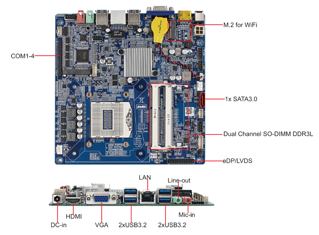 Display: Multiple display via HDMI, VGA, LVDS/eDP