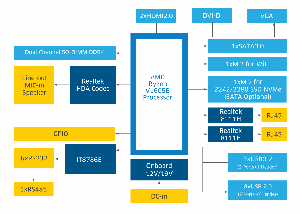 高性能处理器:搭载AMD Ryzen? V1605B四核处理器,为您的设备带来卓越的性能和高效的计算能力,无论是复杂的计算任务还是多任务处理,都能轻松应对。