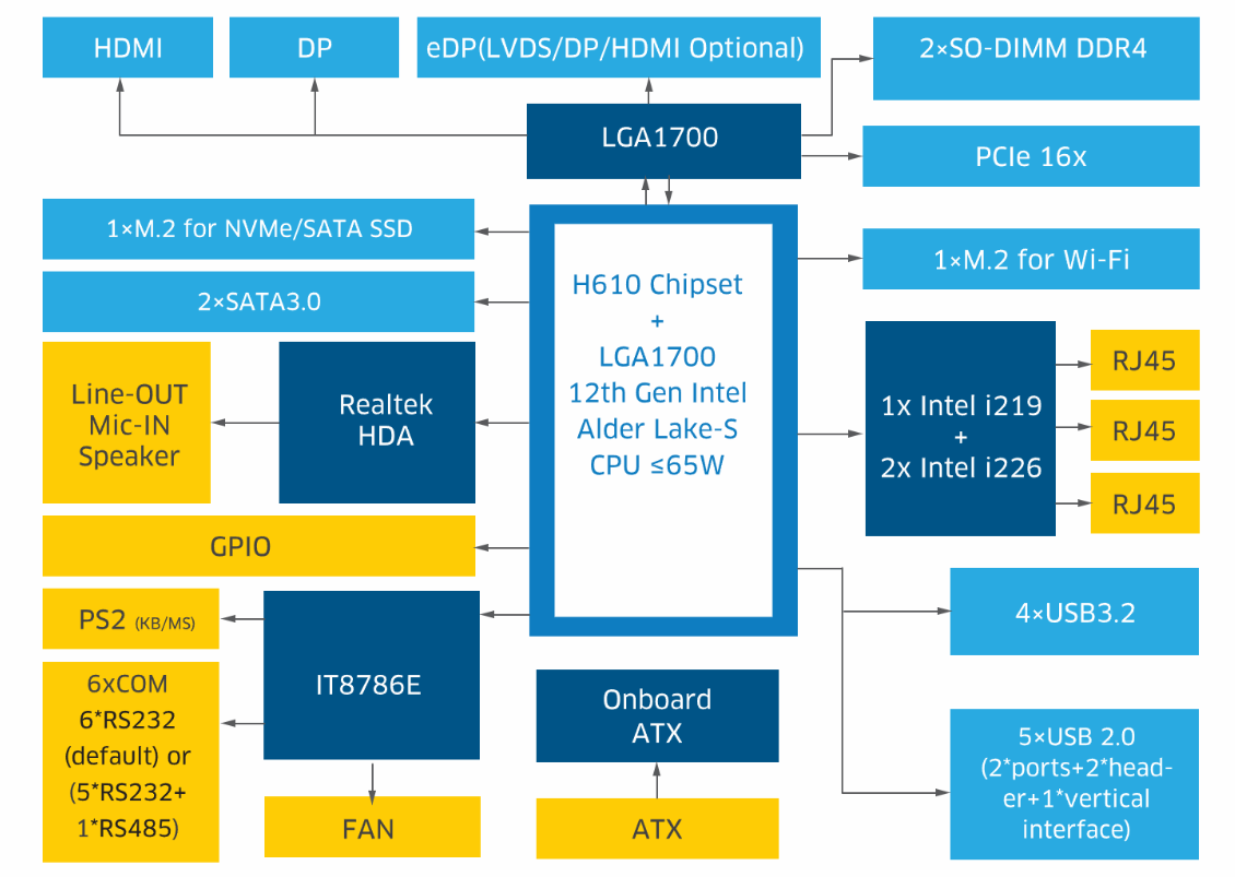 强大的性能核心:搭载Intel? Alder Lake-S系列处理器和H610芯片组,ALD-70主板为您提供卓越的计算性能和稳定的运行环境。