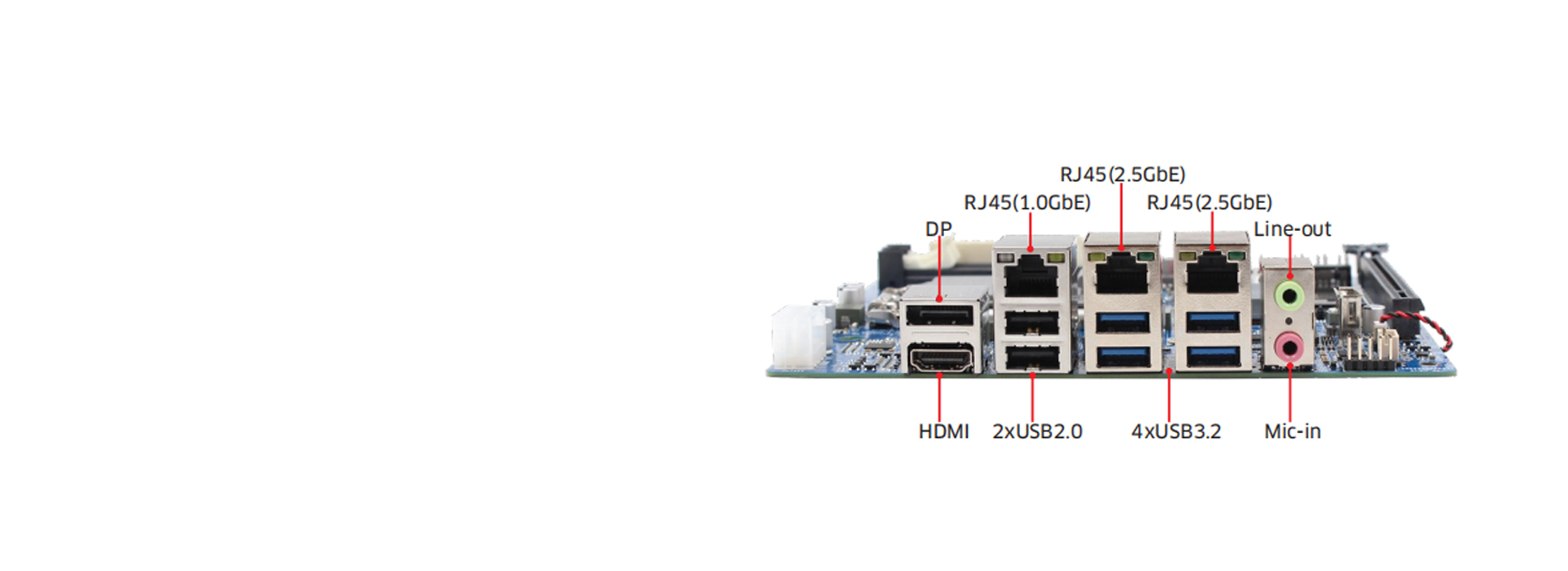 高速网络通信:配备一个Intel i219和两个i226以太网控制器,支持高达2.5GbE的高速网络通信,确保数据的快速传输和稳定连接。