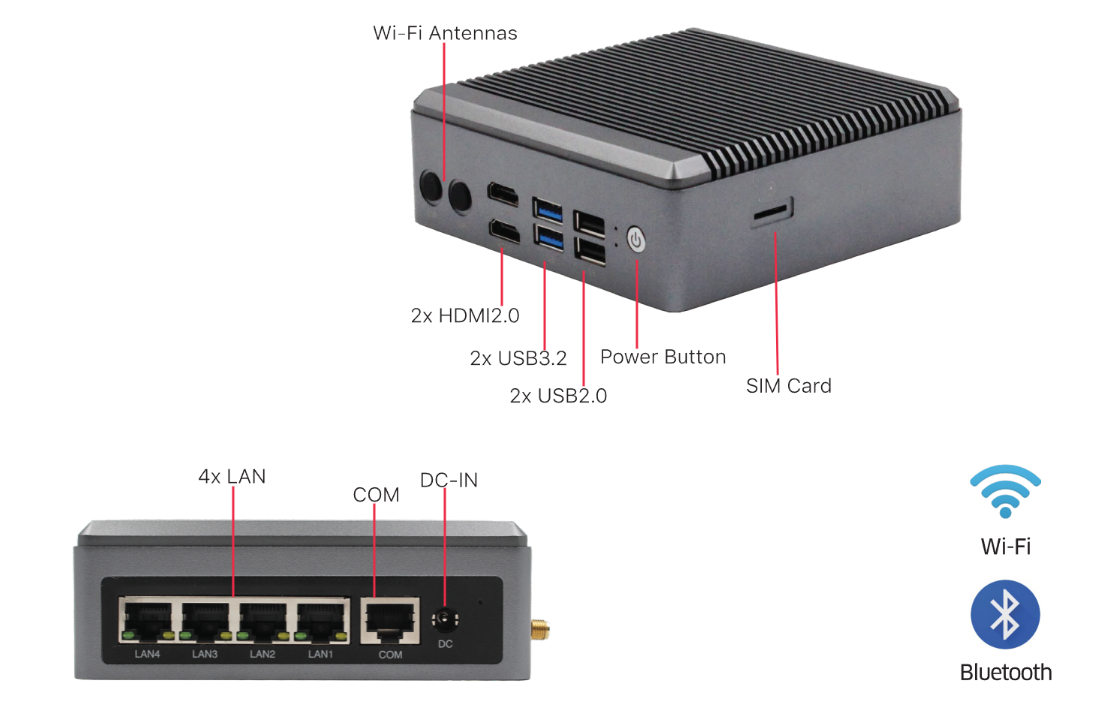 I/O Ports: 4xLAN, 2xUSB3.2, 2xUSB2.0, 1xCOM, 1xSIM