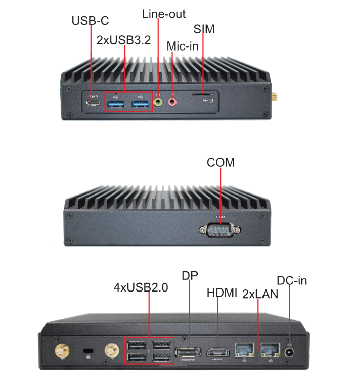 I/O Ports: 2xLAN, 1xCOM, 2xUSB3.2, 4xUSB2.0, USB-C