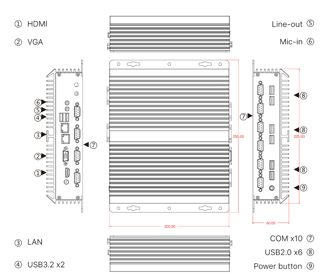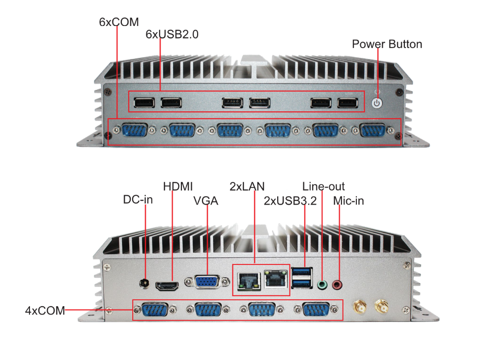I/O Ports: 2xUSB3.2, 6xUSB2.0. 2xLAN, 10x COM
