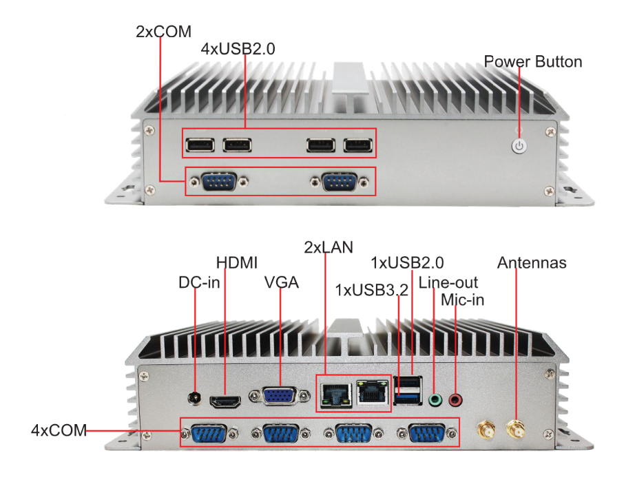 I/O Ports: 1xUSB3.2, 5xUSB2.0. 2xLAN, 6xCOM