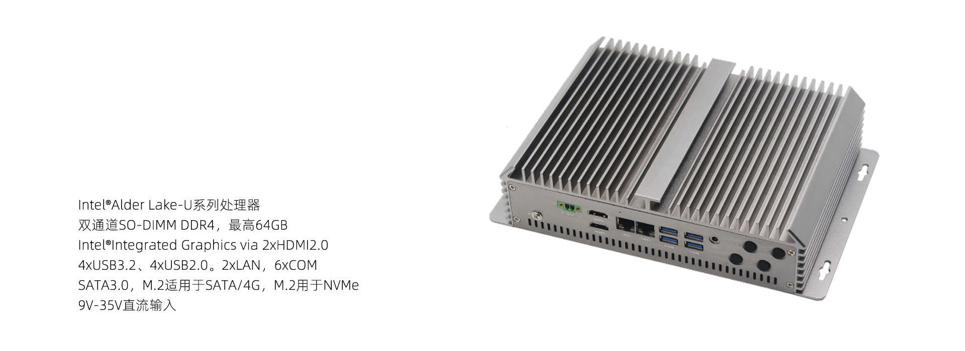 出色的性能:DSAL-35Mini PC搭载最新的Intel? Alder Lake U系列处理器,支持高达64GB的双通道DDR4内存,确保在各种工业应用中都能提供卓越的性能。