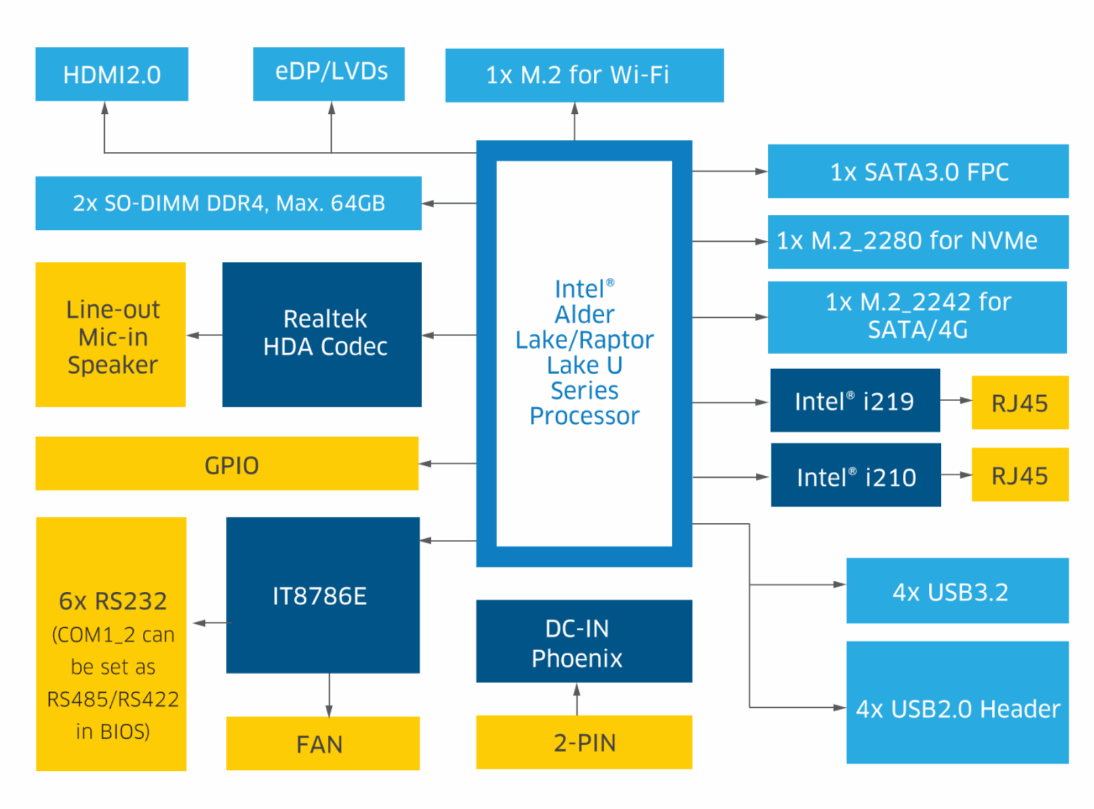 卓越性能与高效生产力:搭载Intel? Alder Lake/Raptor Lake U系列处理器,SBC-AL-35 V1.0 MiniPC提供无与伦比的计算性能,满足各种复杂任务的需求。